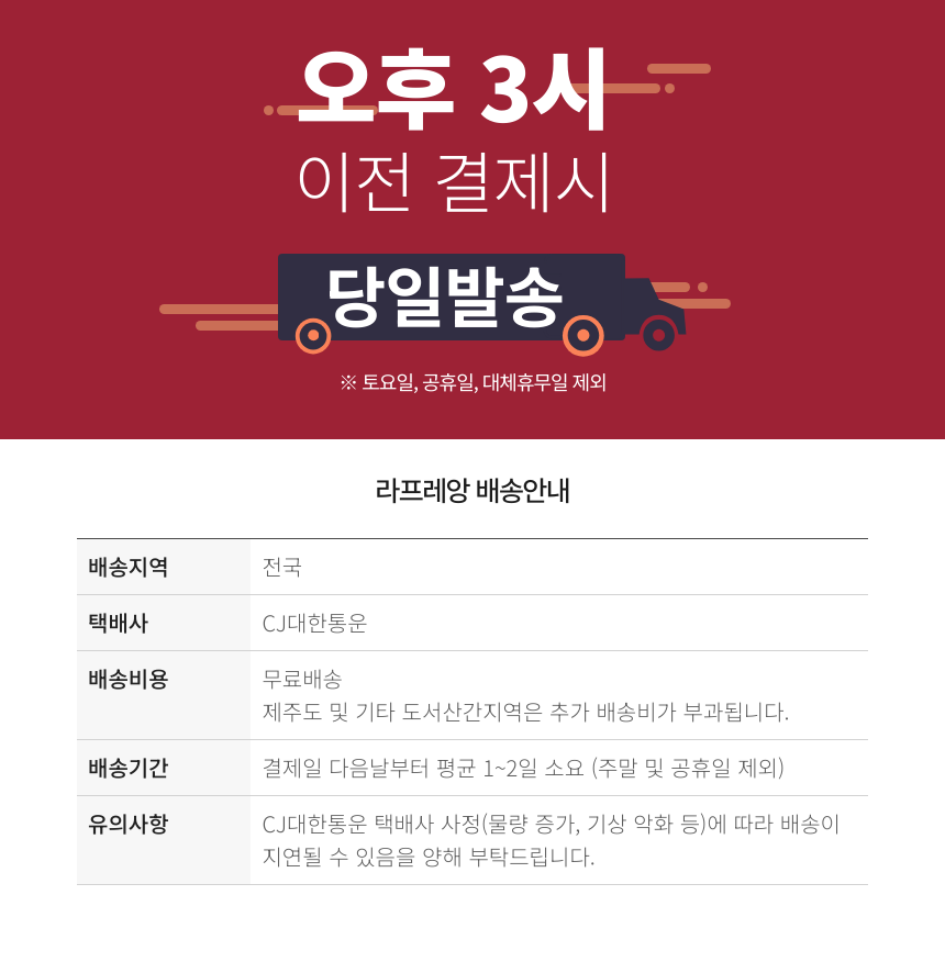 또는 카카오톡에서 "라프레앙"을 검색 후 "상담원 채팅하기"를 눌러주세요. 신속하고 친절한 상담을 도와드립니다. (평일 9:30~18:00)